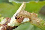 The larva feeds on Ribes spp., especially Ribes rubrum, Ribes nigrum or R. uva-crispa.