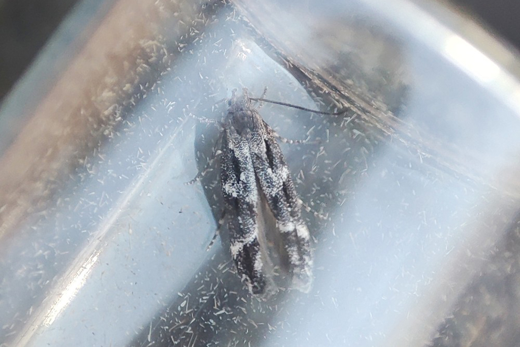 The full-grown larva chews out a neat hole in the side of the gall and leaves the gall in order to pupate amongst detritus on the ground in a white, sometimes sticky cocoon.