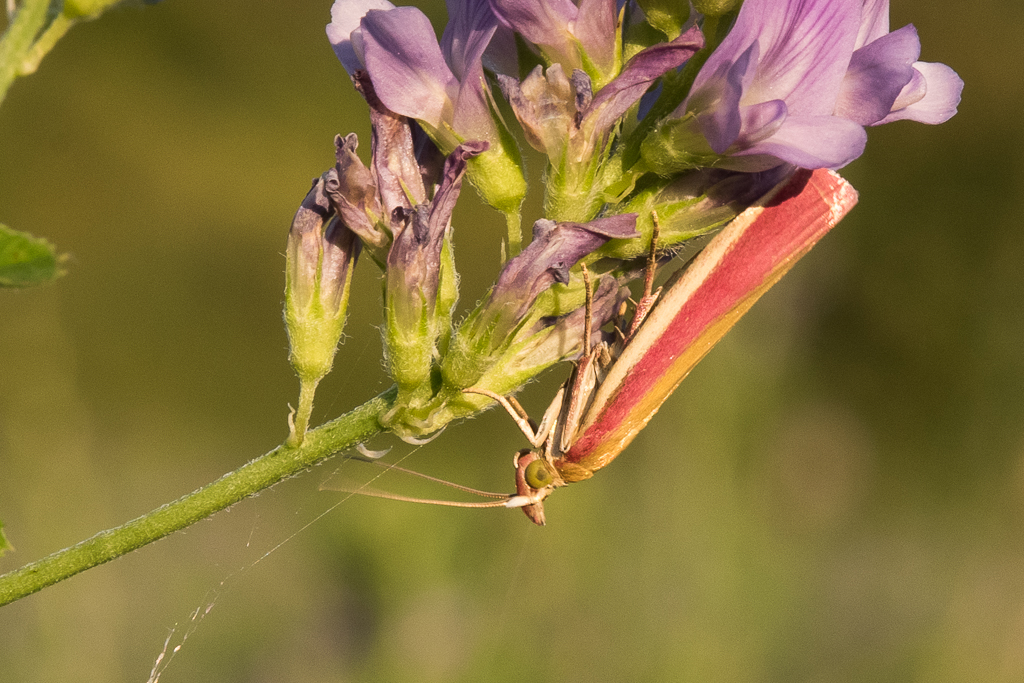 The larva feeds on Lotus corniculatus, Trifolium repens, Ononis, Hippocrepis or Medicago.
