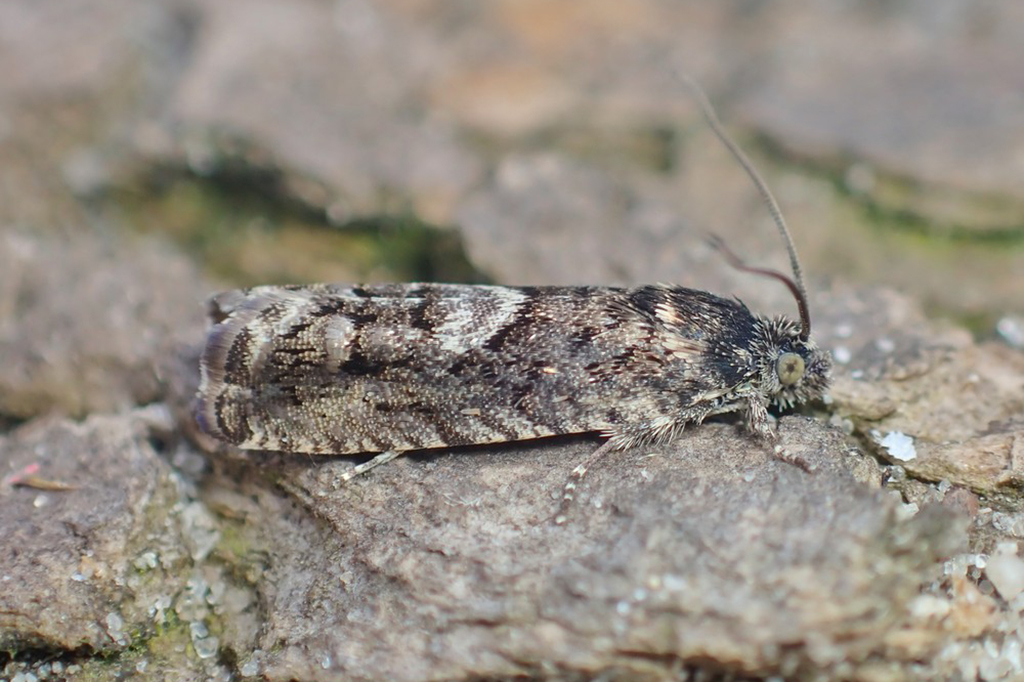 The adults can sometimes be found on the wing in the afternoon and later come to light.