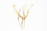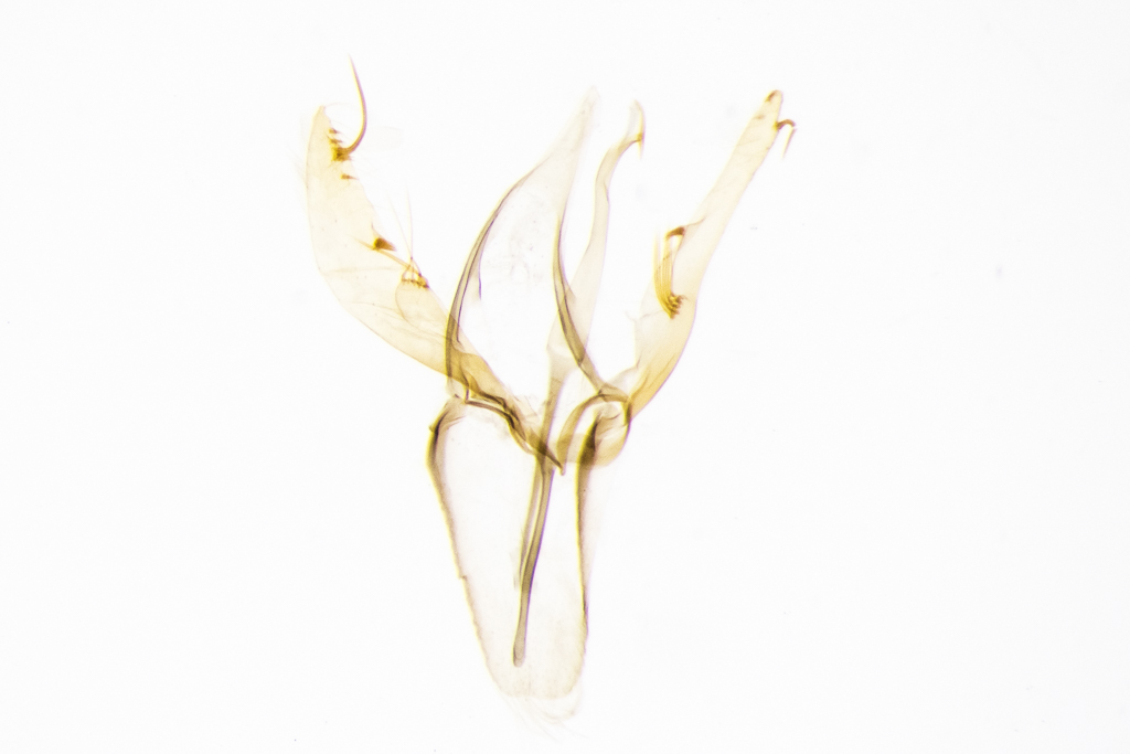 Head ochreous; forewing ground colour golden ochreous, white pattern consisting of a thin, long basal line, reaching the middle of the wing and finely edged with brown scales; four costal and four dorsal striae; the first dorsal stria just a match of some whitish scales, the second one much longer than the other ones and curved towards the apex; apical area shining purplish in fresh specimens; a small blackish dot in the apical area.
