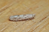 Head brown with a mixture of white hairs; forewing ground colour brown; whitish pattern consisting of some inconspicuous costal and dorsal striae. In some specimens, the forewing could be described as a white ground colour with brownish pattern. In both cases, there are two dark brown patches at the dorsal margin, just before and just after the centre.