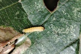 The last instar of the summer generation makes a very flimsy spinning, that of the autumn generation constructs a tough, white cocoon.