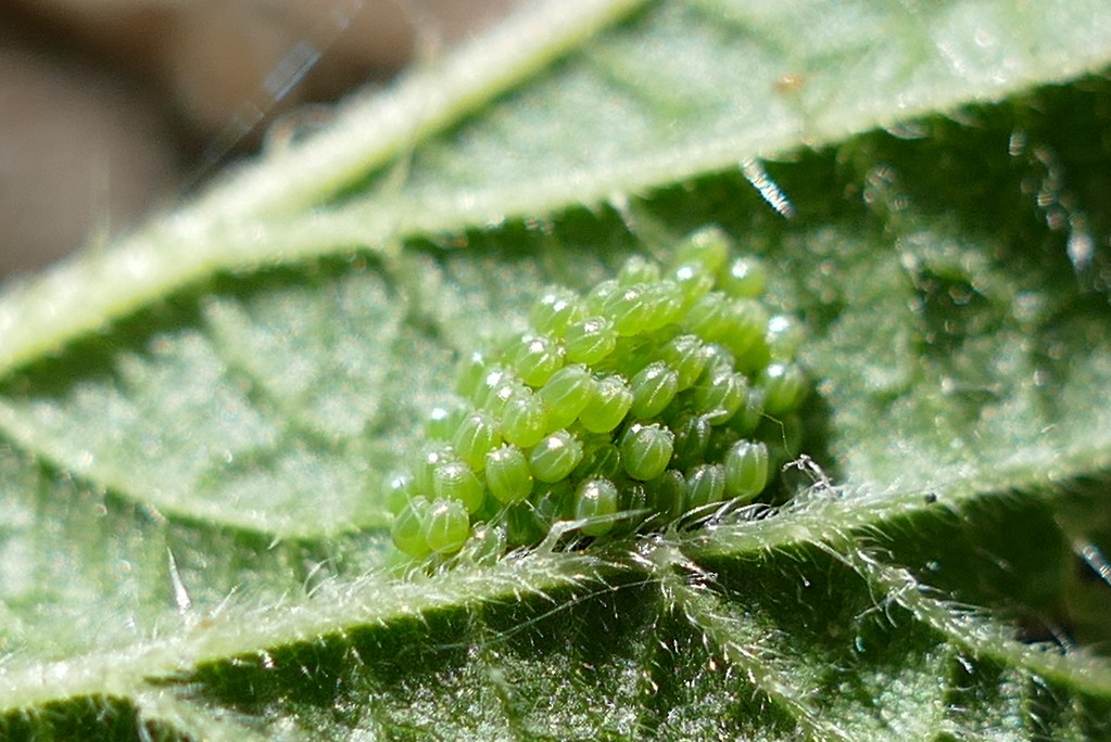 The larva lives on Urtica, at first gregariously, later on individually.