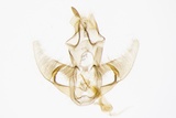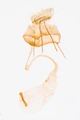The larvae feed gregariously among the shoots and in rolled leaves, turning these brown.