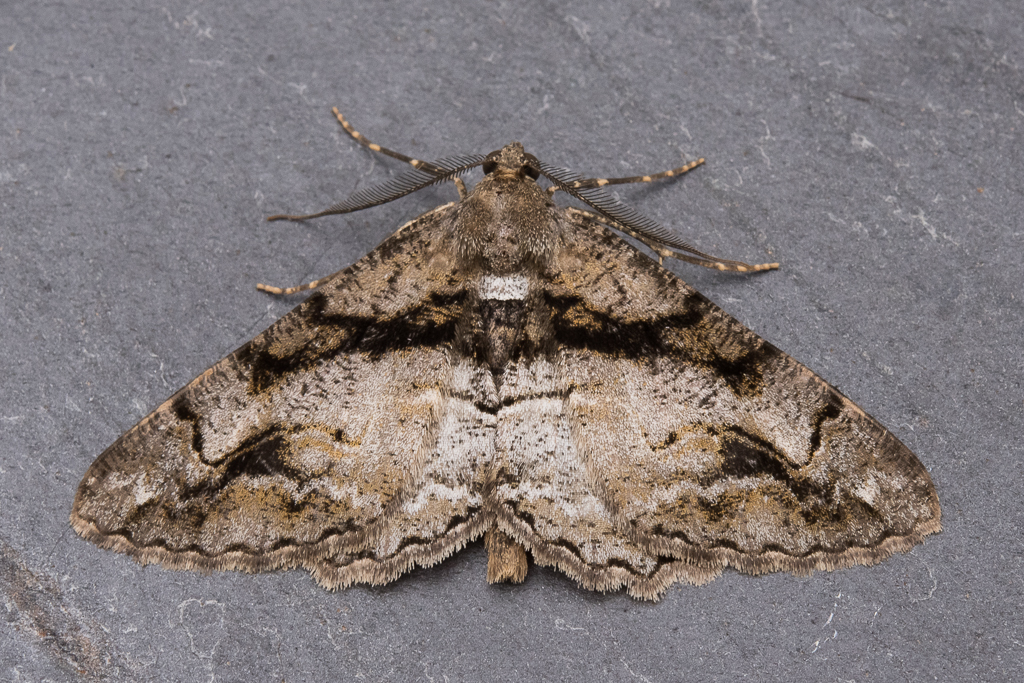 The adults fly in one generation a year in July and August.
