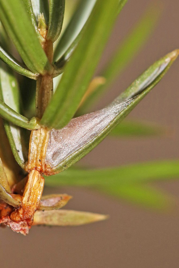 The adults can be beaten from Juniperus bushes by day.