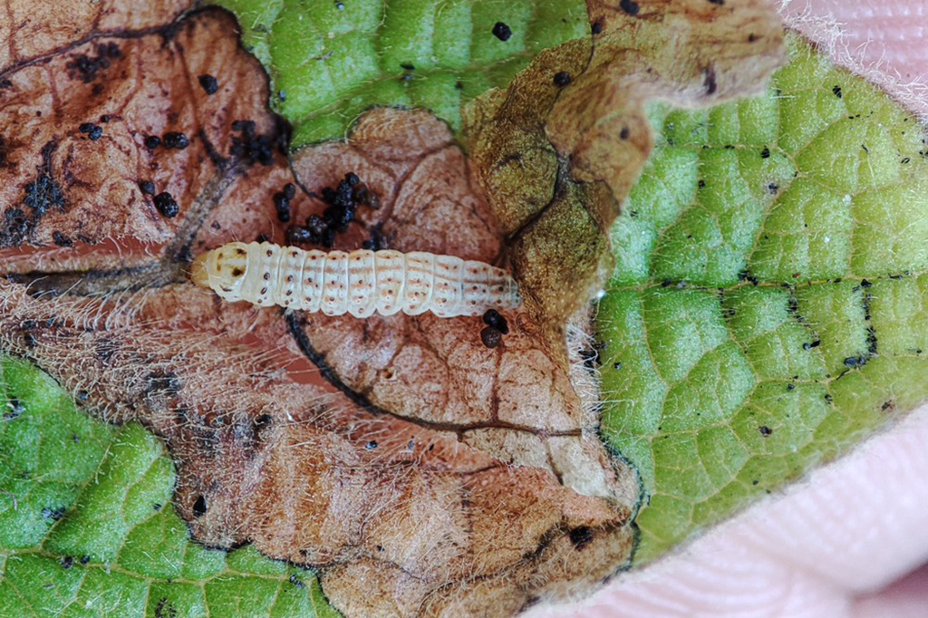 The larva makes a large brown blotch mine in the lower leaves of the food plant. Sometimes several larvae occupy the same mine. Pupation amongst leaf-litter on the ground.