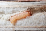 The larva feeds on the seeds and roots and hibernates full-fed in a cocoon between bark and pith in a last years dead stem of the food plant. The larva prepares an exit hole. The pupa protrudes the stem before emerging.