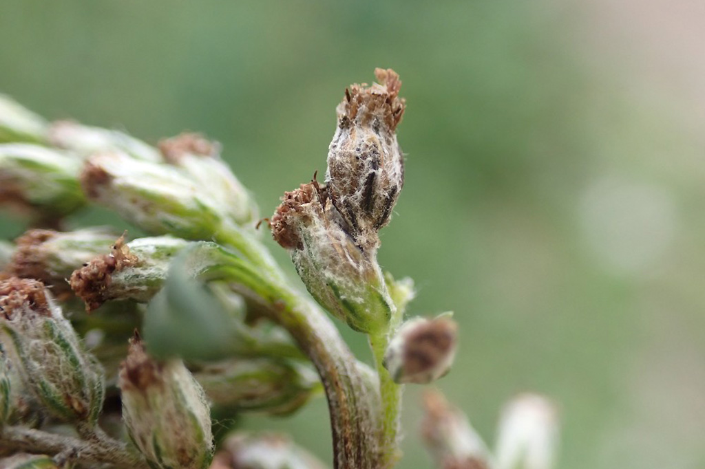 The eggs are oviposited on the flowers of the host plant. The larvae live on Artemisia vulgaris inside an eaten out inflorescence and are therefore very difficult to find. They move around from seed to seed leaving characteristic small perforations in the side of each one and are full-grown in September.
