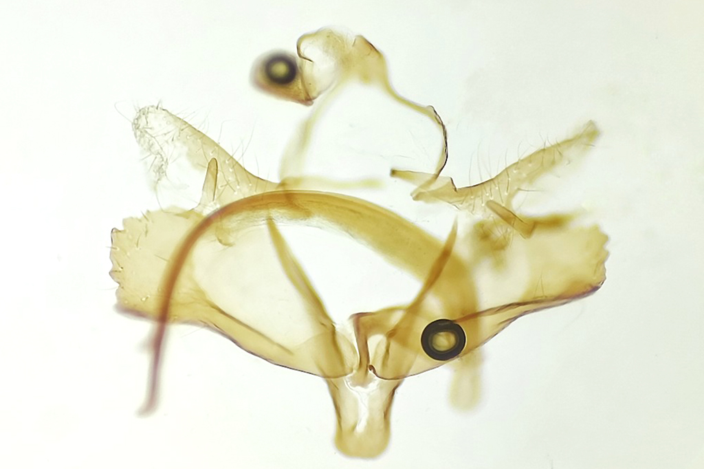The caterpillar lives in a case made from a seed. It is 4–5 mm long.