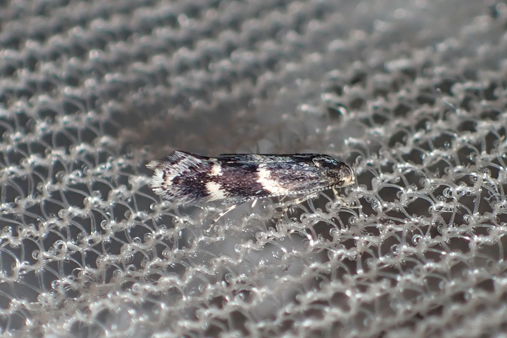 This species varies in the intensity of the grey ground colour, some individuals are quite dark with distinct whiter fasciae, some have rather less contrasting markings. The wingspan is 8 mm.