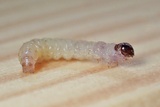 Head brown ochre colored; later instars are dark brown, almost black.