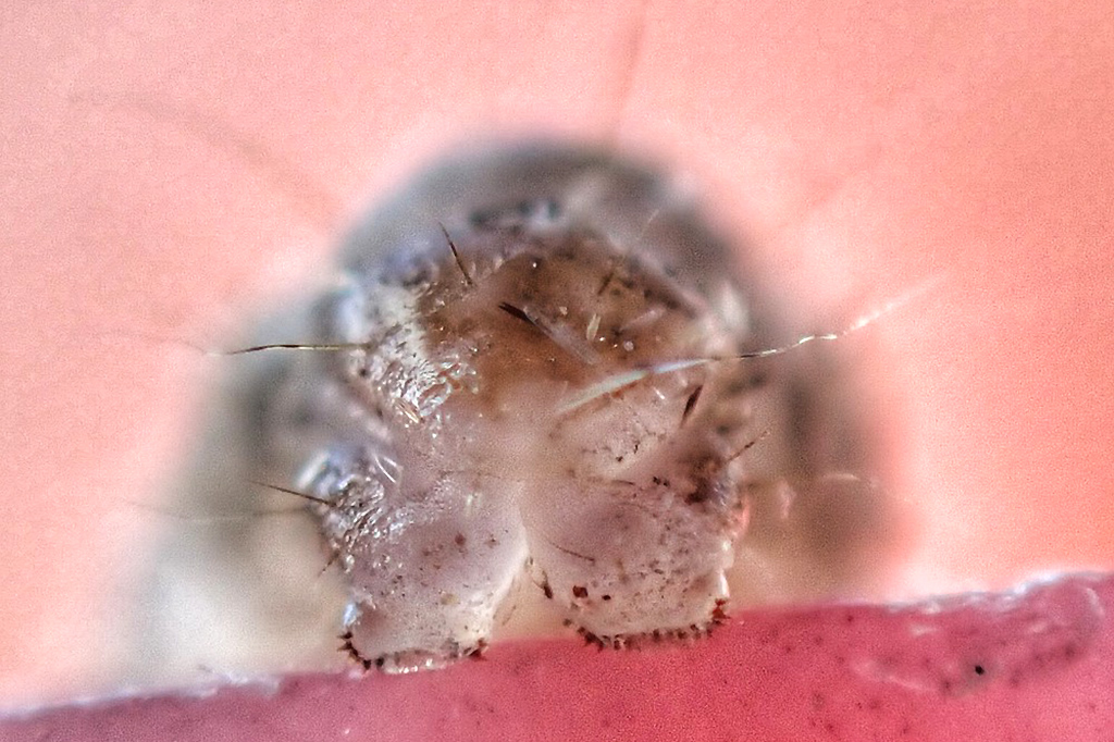 Anal segment with no anal comb. Anal plate is translucent yellowish green with a few grey spots on the anterior; later instars also no anal comb and the anal plate is translucent brown with darker spots on the anterior.