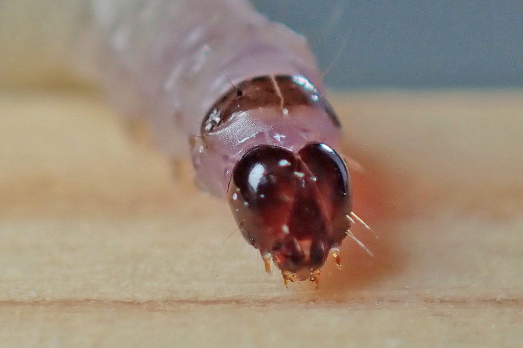 Thoracic legs are yellowish brown and translucent; later instars have golden brown legs.