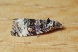 Wingspan 11-16 mm. The males of this species have noticeably whitish hindwings which help distinguish it from similar species, but the females have darker hindwings and are more difficult. Adults of this, and several similar Endothenia species, require dissection of the genitalia for accurate identification.