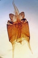 The mine starts near a leaf margin with a short corridor and expands later on into a large, dirt-white blotch mine that continues in the direction of the main vein or even crosses it.