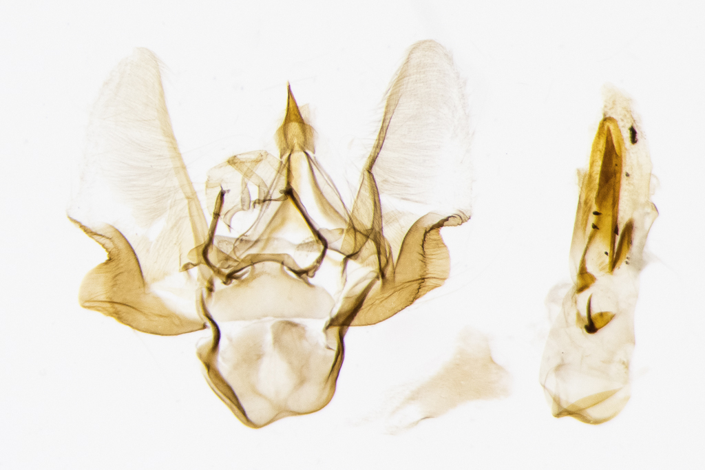 The larva lives on various coniferous trees like Picea abies or Pseudotsuga menziesii.