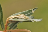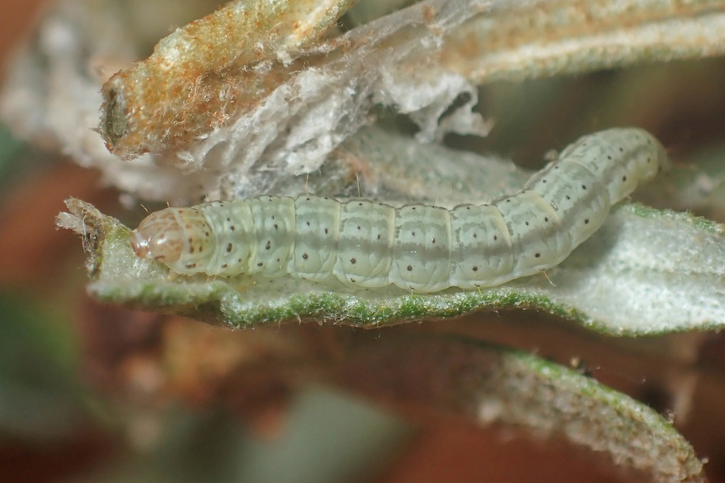 The larva lives in terminal shoots spun together on the host plant.