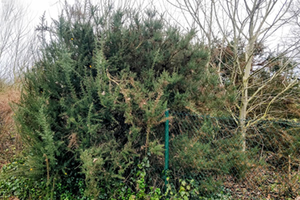 The larva feeds on various species of Ulex, including Ulex europaeus, Ulex parviflorus, and Ulex minor.